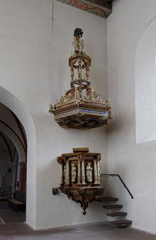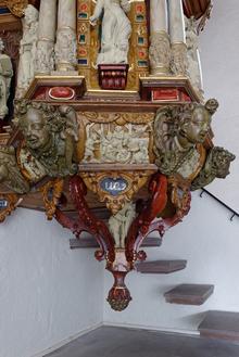 Kanzel mit Schalldeckel und Treppe
