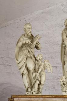 Die Evangelisten-Statuen verkörpern das bedeutende Spätwerk Ludwig Münstermanns in seinem Anspruch auf Monumentalität. Diese Wirkung wird durch die original wiederhergestellte Weiß-Fassung gesteigert, welche die Kostbarkeit von Alabaster oder gar Marmor suggeriert.
