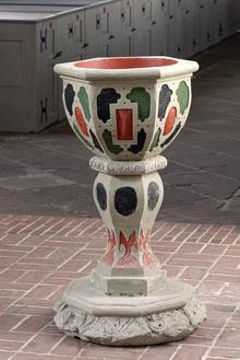 aus dem 13. Jahrhundert. Es hat die Form eines Kelches auf sechseckigem Grundriss.