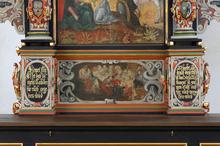 Zustand: Der Altar wurde im Zusammenhang mit der Kirchenrenovierung 1983/84 restauriert. Bei einer partiellen Freilegung wurden ursprüngliche Gemäldeteile und eine gut erhaltene Originalfassung des Holzes sichtbar.