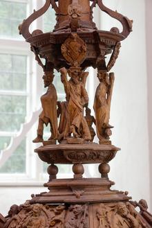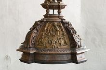 Trotz aller Verluste, Beschädigungen und Ergänzungen ist dieser Taufdeckel durch seine reiche und phantasievolle Gestaltung bemerkenswert.